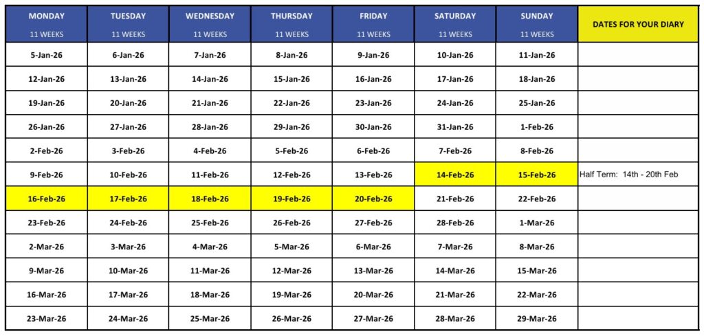 Our next crash courses will be running during the Autumn Half Term starting on Monday 27th and ending on Friday 31st of October. Click here for more details